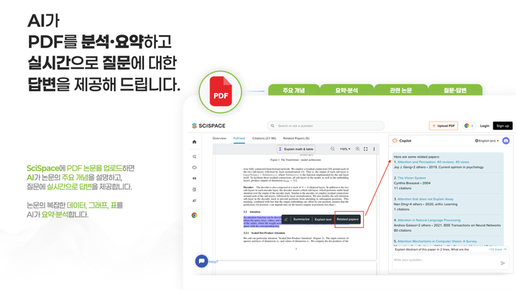 - 복잡한 문장·개념·수식·표·figure를 AI로 효율적으로 해석합니다