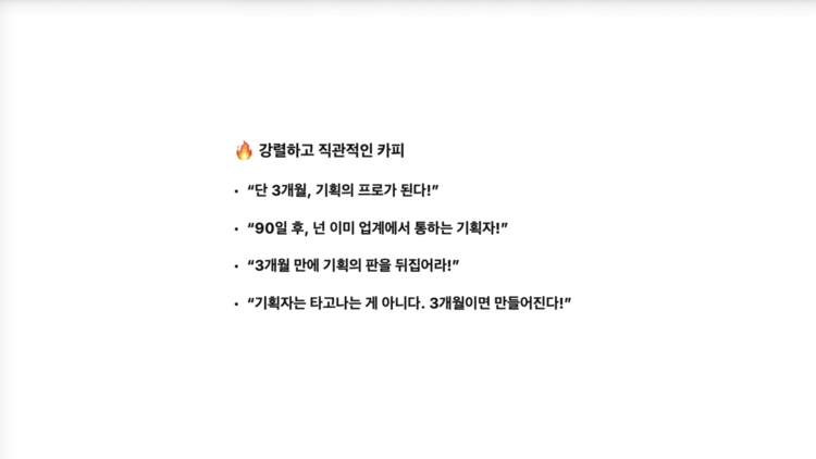 - 정보 나열을 철학과 태도가 담긴 메시지로 바꾸는 감각을 얻게 됩니다