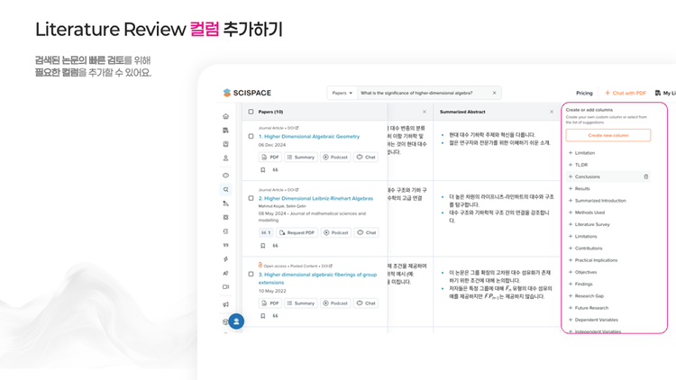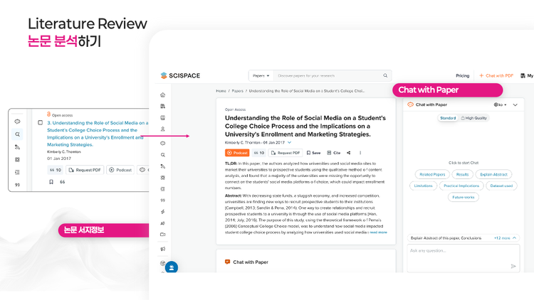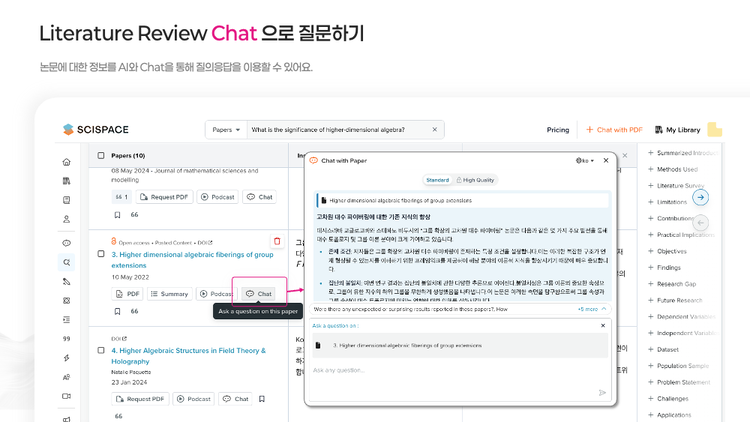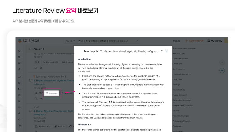 - 여러 논문을 나란히 비교해 연구 트렌드와 쟁점을 즉시 읽어냅니다