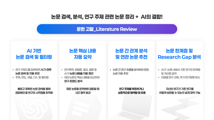 - 기존 연구의 한계점과 Research Gap을 빠르게 도출합니다